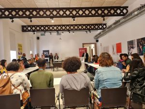 Otra de las acciones de este mes es la participación de la Colectiva Portal de Igualdad en el Congreso Internacional: !A los museos! Con todo y con todas! Organizado por MAV y el Instituto Universitario de Estudios Feministas y de Género de la Univeristat Jaume I de Castelló, con la colaboración del Museu d´Art Contemporani Vicente Aguilera Cerni de Vilafamés (MACVAC) que dirige Rosalía Torrent, también compañera y componente de la Colectiva Portal de Igualdad. En esta ocasión Amparo Zacarés Pamblanco, en representación de La Colectiva, presentó una ponencia sobre Arte público feminista para inaugurar la exposición “Compartir es Vivir” en la sala Quatre Cantons del MACVAC. El conjunto de obras, expuestas en este recinto, reunió los carteles que se colocaron en las mupis y marquesinas del municipio de Marin en noviembre de 2022, tal como se explicó en anteriores notas de prensa de la Colectiva. La muestra concitó interés por parte del público asistente y recibió varias peticiones para poder ser llevada a otros municipios.