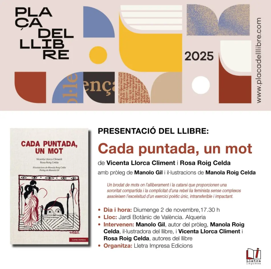 - Manola Roig Celda (Nela), componente de la Colectiva, ha sido artista seleccionada por la escuela de arte y diseño de la Comunidad de Madrid en la convocatoria SUPERCOLLAGE. Mujeres que cortan y pegan. Nuestra felicitación y enhorabuena por este reconocimiento a su creatividad y obra artística. También en este mes de noviembre Manola Roig participó en la presentación del libro “Cada puntada, un mot” del que ha realizado sus ilustraciones. Por otra parte, en la misma fecha significativa del 25 de noviembre las artistas Carmen Reig y Manola Roig Celda coordinaron, dentro del marco del Club de Lectura de Fortaleny, la acción colectiva performativa “Cosiendo Justicias”, una propuesta artística reivindicativa para denunciar la violencia machista y preservar la memoria de las víctimas. La acción tuvo lugar en el Salón Plenario del Ayuntamento de Fortaleny, fue un acto reivindicativo de memoria, resistencia y compromiso con la justicia.