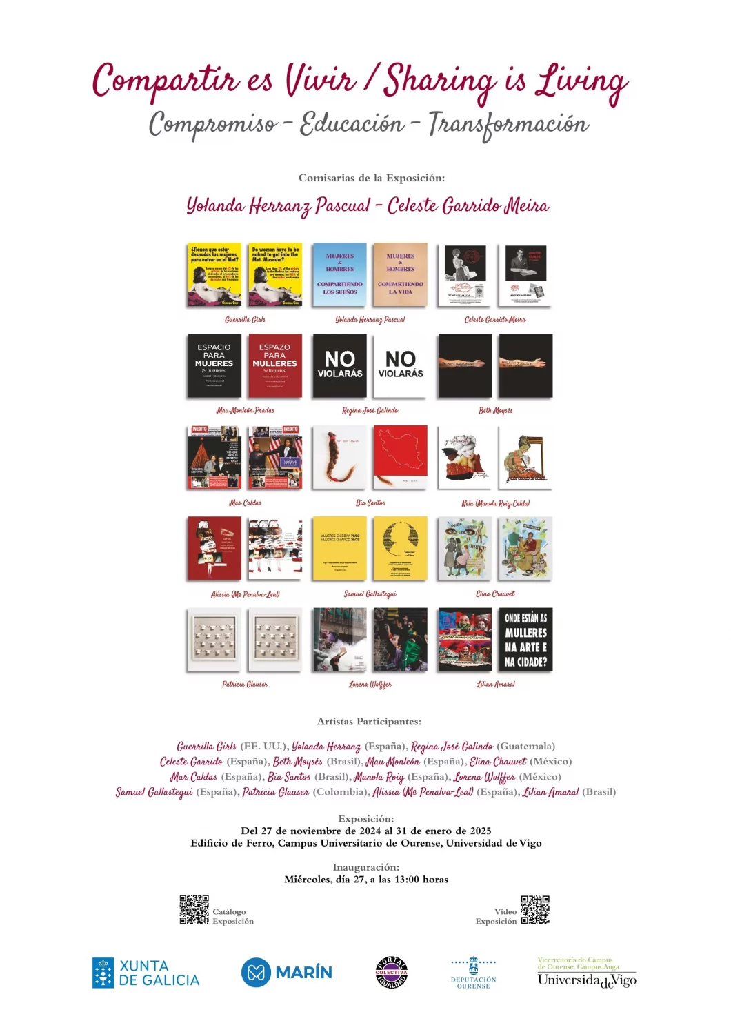 Compartir es Vivir / Sharing is Living se enmarca en las actividades de La Colectiva Portal de Igualdad y está comisariada por las artistas Yolanda Herranz Pascual y Celeste Garrido Meira, ambas integrantes de La Colectiva.