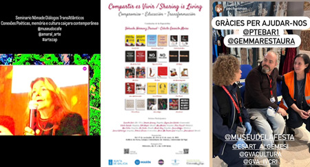Estuvimos en la XXI edición del festival Ellas Crean 2025 con la Exposición “Compartir es Vivir/ Sharing is Living”, y la exposición de Concha Mayordoma, “Mujeres artistas. Dibujando un futuro en Igualdad”, en la XI edición de MMM donde Mau Monleón-Pradas entrevistó a Lorena Wolffer artista mexicana, en #MMMrecomienda Mar Caldas con una muestra de su obra: «Mulleres, Traballo e Memoria», Ana Beltrán monstró su performance en la UV «Després d’esperar, keep on waiting weaving”.